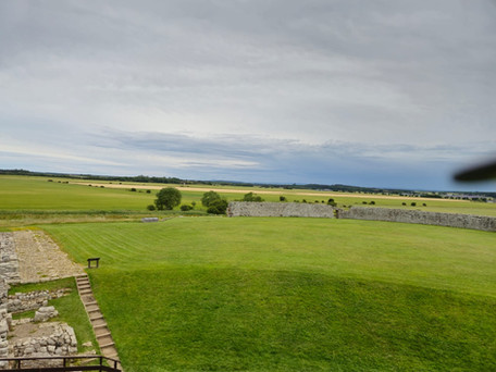 "A Castle" Ferghas said "how interesting" A nice walk into the Moray countryside Ferghas came across Duffus Castle nestled away from the road and perched upon a great mound. As he walked upon it he came across a stream, but this was not a normal stream this was dug out by humans, this was a Motte. Ferghas had read about these and new this was one of the ways they defended their castles. They dug streams all around and made bridges they could defend or take away when needed. He walked further round and felt the large smooth stone beneath his hoofs. Feeling a little unsteady he moved over to the grass and walked further up the mound, he smiled as he saw so much open field. He ran around the outer wall as fast as he could and felt a strange wind woosh passed his ears, suddenly he's walking through a very old village. "what just happened" he thought. He looked at the roofs of homes and saw they had straw all across the top. People walked around what looked like a bustling square taking goods back and forth. Ferghas walked up the steep mound to the main castle, no-one looked or paid any attention to him as he walked by. "goodness, this is like a memory" he went into the main hall and saw the grandeur of the whole room. As a flash of light passed through the main arch, suddenly Ferghas was stood in the ruins of the old castle. He looked around some more, not daring to run around again, what really stood out to him was the prison. "I don't fancy ever ending up in there" he thought to himself. As he left he looked back and the castle stood whole and bustling before returning back into the ruin again.